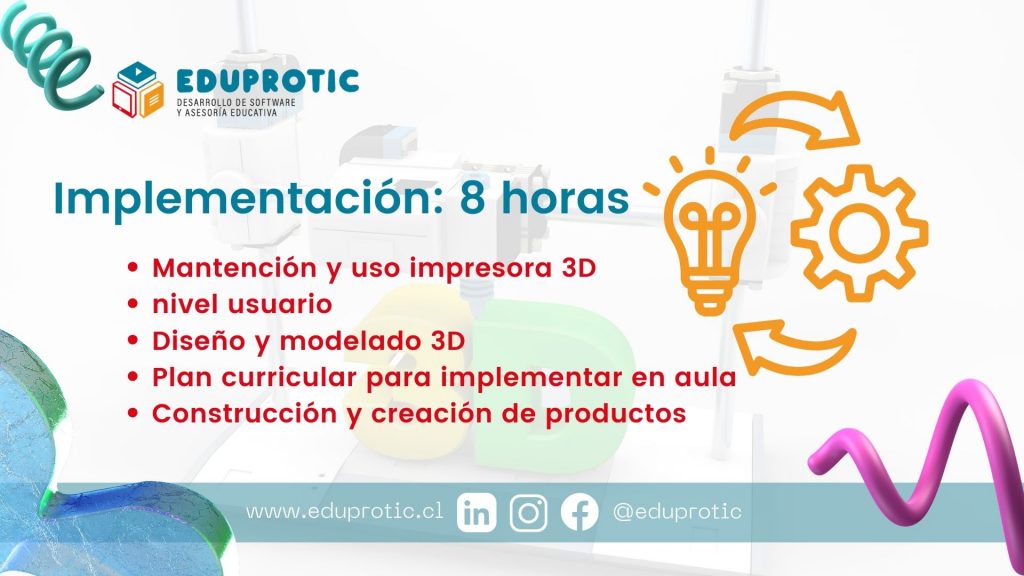 Diseña, Imprime y Transforma tu Aula! Incorporando impresión 3D para poder generar material pedagógico, proyectos de innovación, material complementario, hacer tus propios robot y un sinfín de otras posibilidades.