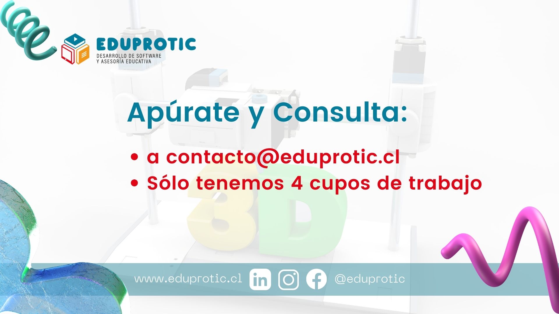 Para más información escribir a contacto@eduprotic.cl o al teléfono +56986724987